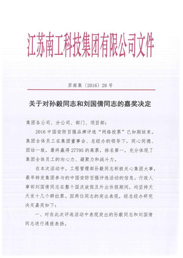 您的位置:集团首页 >> 新闻中心 >> 集团公告 >> 关于对孙毅同志和刘国倩同志的嘉奖决定