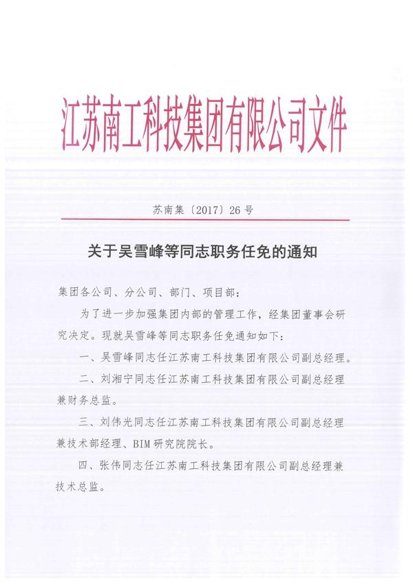 您的位置:集团首页 >> 新闻中心 >> 集团公告 >> 关于吴雪峰等同志职务任免的通知
