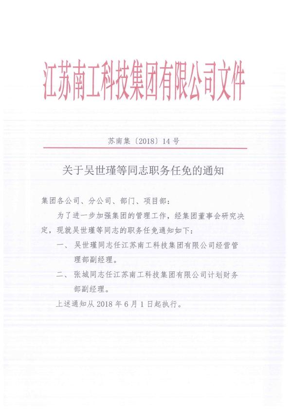 您的位置:集团首页 >> 新闻中心 >> 集团公告 >> 关于吴世瑾等同志职务任免的通知