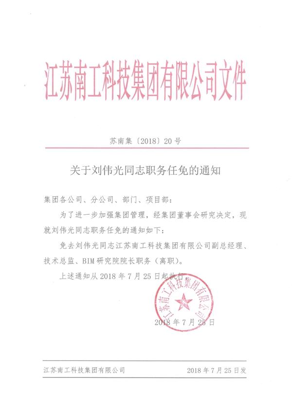 关于刘伟光同志职务任免的通知