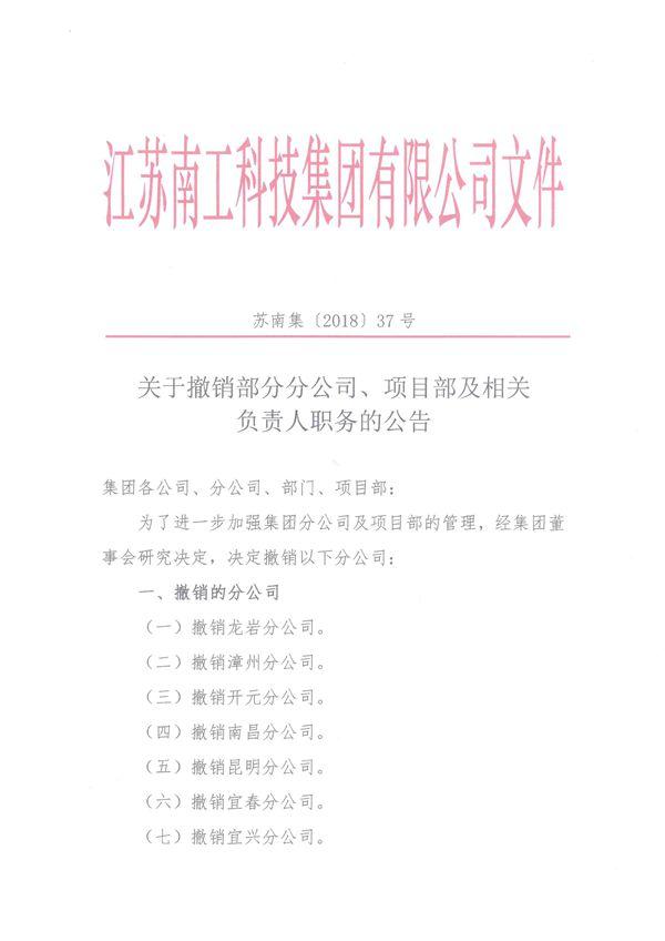 关于撤销部分分公司、项目部及相关负责人职务的公告