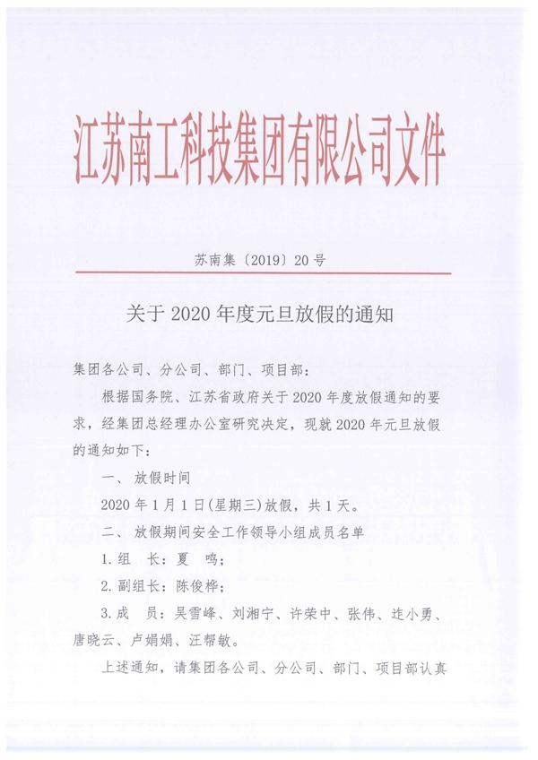 您的位置:集团首页 >> 新闻中心 >> 集团公告 >> 关于2020年度元旦放假的通知