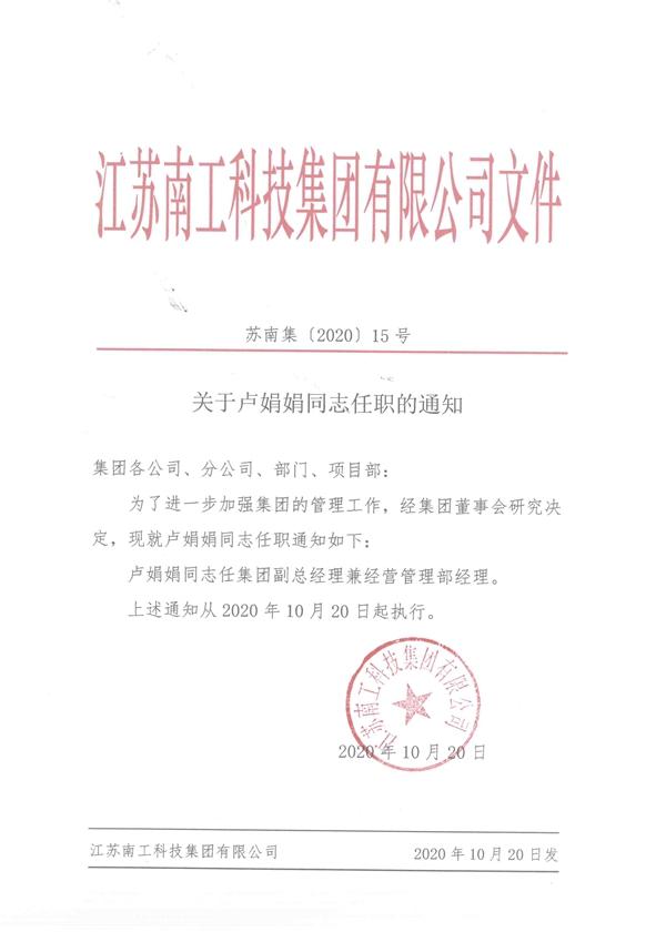 您的位置:集团首页 >> 新闻中心 >> 集团公告 >> 关于卢娟娟同志任职的通知