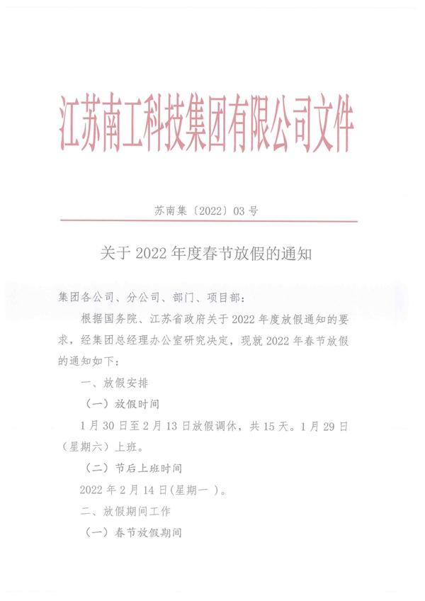 您的位置:集团首页 >> 新闻中心 >> 集团公告 >> 关于2022年度春节放假的通知