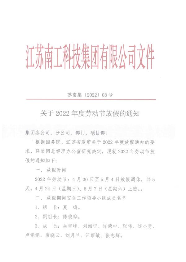 关于2022年度劳动节放假的通知