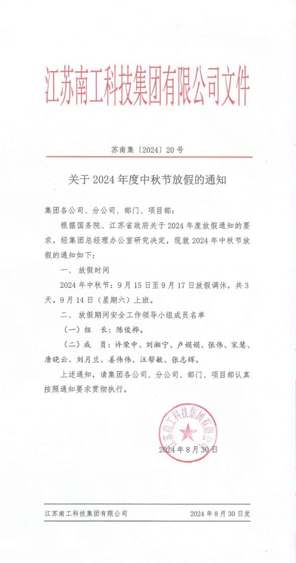 您的位置:集团首页 >> 新闻中心 >> 集团公告 >> 关于2024年度中秋节放假的通知