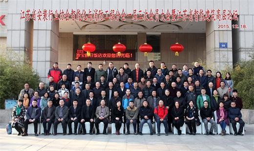 2015年12月18日,江苏省安装行业协会智能化与消防工程分会一届三次会员代表 大会暨江苏省智能建筑高层论坛在南京珍宝假日大酒店隆重召开。参加会议的有江苏省安装行业协会会长邹金林;中国安装协会智能化与消防工程分会会长、江苏省安装行业协会智能化与消防工程分会会长陈晓;分会常务副会长吴星红、副会长刘昌华、周蓉蓉、顾永松、陈曦、管清宝、陈水金、徐本裕、李旻、肖忠海、袁勇;分会常务副秘书长席天阳、副秘书长王建明、祖咏、余晶;专家委副主任叶浩生、万里远;江苏太阳成集团tyc122cc入口科技集团有限公司副总经理陈俊桦及专家和会员单位代表等180多人。