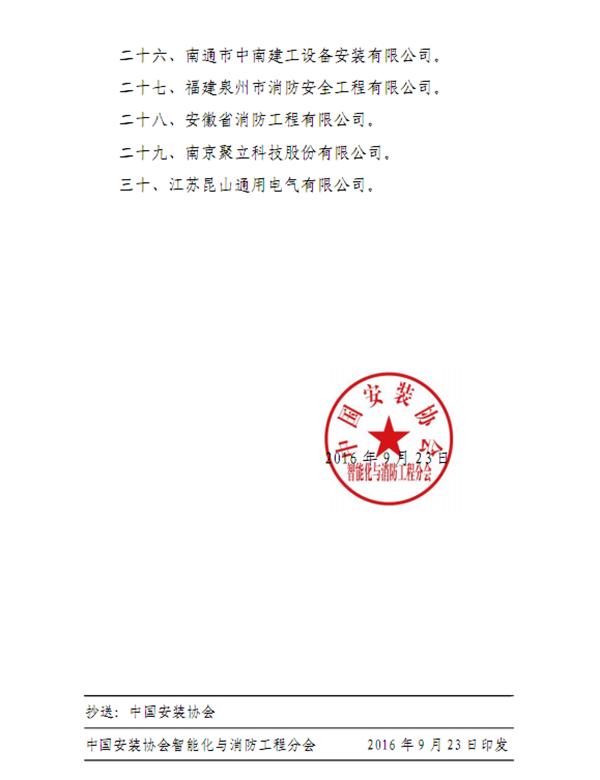 2016年9月23日,由中国安装协会智能化与消防工程分会组织评选的“全国智能化与消防工程行业三十强”企业名单正式公布,集团荣获了“全国智能化与消防工程行业三十强”企业的殊荣。