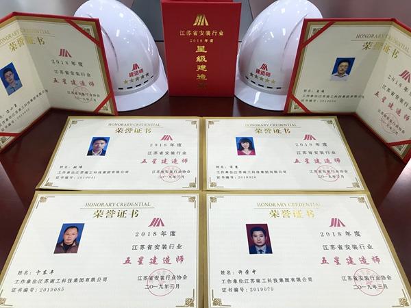 会议对荣获2018年度江苏省安装行业“星级建造师”进行了表彰并颁奖。集团常务副总经理夏鸣、副总经理许荣中、张伟、总工程师周志刚、工程管理一部总经理迮小勇、副总工程师宋慧、工程管理部卞东年等荣获了2018年度江苏省安装行业“星级建造师”称号。