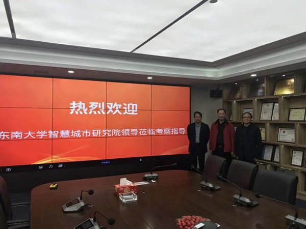 2019年10月29日,东南大学智慧城市研究院王庆院长、王昌富处长、张浩博士等到集团考察工作,陪同考察的有江苏太阳成集团tyc122cc入口科技集团有限公司总经理陈晓、常务副总经理夏鸣、副总经理吴雪峰、总经理助理兼行政人事部经理唐晓云、张晶晶等。