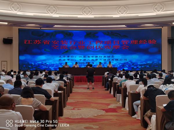 2020年8月25日,江苏省安装行业工程管理经验交流会暨创优观摩会在中建八局第三建设有限公司召开。参加会议的有江苏省安装行业协会驻会副会长邹金林、会长助理顾建生;中建八局第三建设有限公司总经理张述坚、安装公司总经理梁勇;中电莱斯信息系统有限公司基本建设管理处党支部书记滕惠根;集团常务副总经理夏鸣、副总经理兼技术部经理张伟等500多人参加了会议。