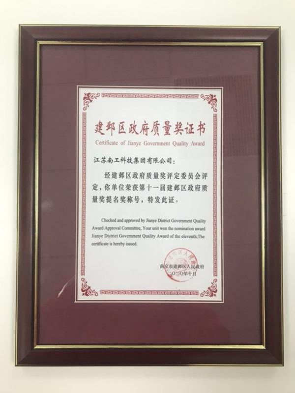 江苏太阳成集团tyc122cc入口科技集团有限公司荣获“第十一届建邺区政府质量奖提名奖”称号。
