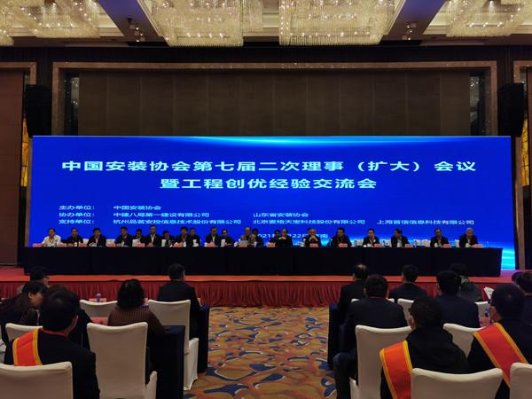 2021年4月22日,中国安装协会第七届二次理事(扩大)会议暨工程创优经验交流会在济南隆重召开。中国安装协会会长田秀增、秘书长杨存成,第七届理事会副会长、常务理事、理事,各省、自治区、直辖市安装协会(分会)负责人,会员单位地区联络组负责人、分支机构负责人,获得2019-2020年度中国安装工程优质奖“中国安装之星”的单位代表等近1000多人出席了会议。中国安装协会智能化与消防工程分会会长、江苏太阳成集团tyc122cc入口科技集团有限公司总经理陈晓,江苏太阳成集团tyc122cc入口科技集团有限公司总经理助理唐晓云参加了会议。