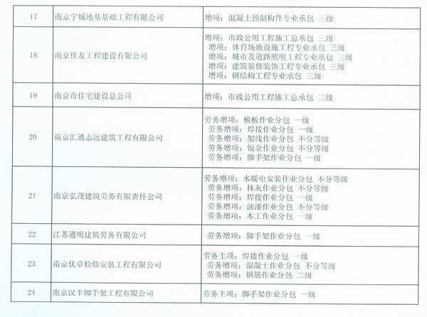 关于公布南京市2014年第二批核准的由市级建设主管部门许可资质的建筑业企业名单的通知