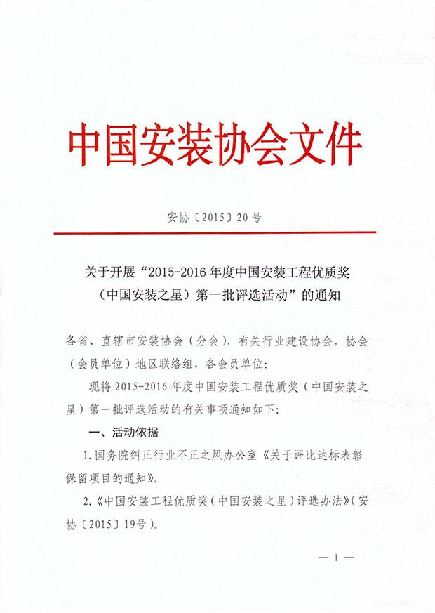 下载附件:2015-2016年中国安装工程优质奖(中国安装之星)第一批申报工程信息表