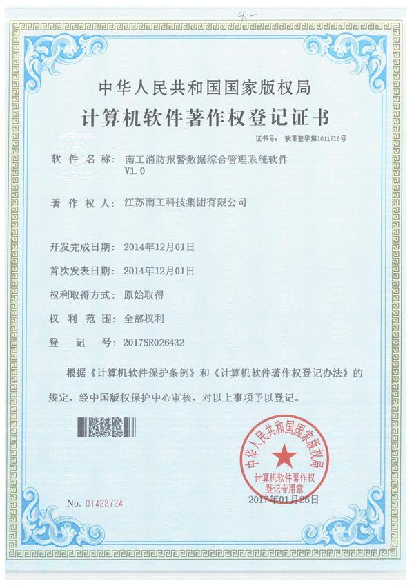 太阳成集团tyc122cc入口消防报警数据综合管理系统软件证书